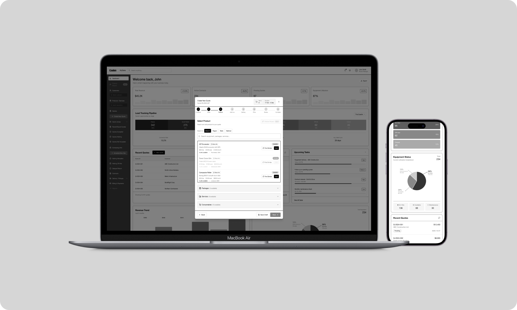 Making part of the team responsible for driving the initial phase (Concept & Discovery) of a major internal software revamp, I was the sole Product designer and worked on improving the current UX for Coates main productivity tool, utilised for quoting, hiring and managing new materials and CRM through all of their branches.